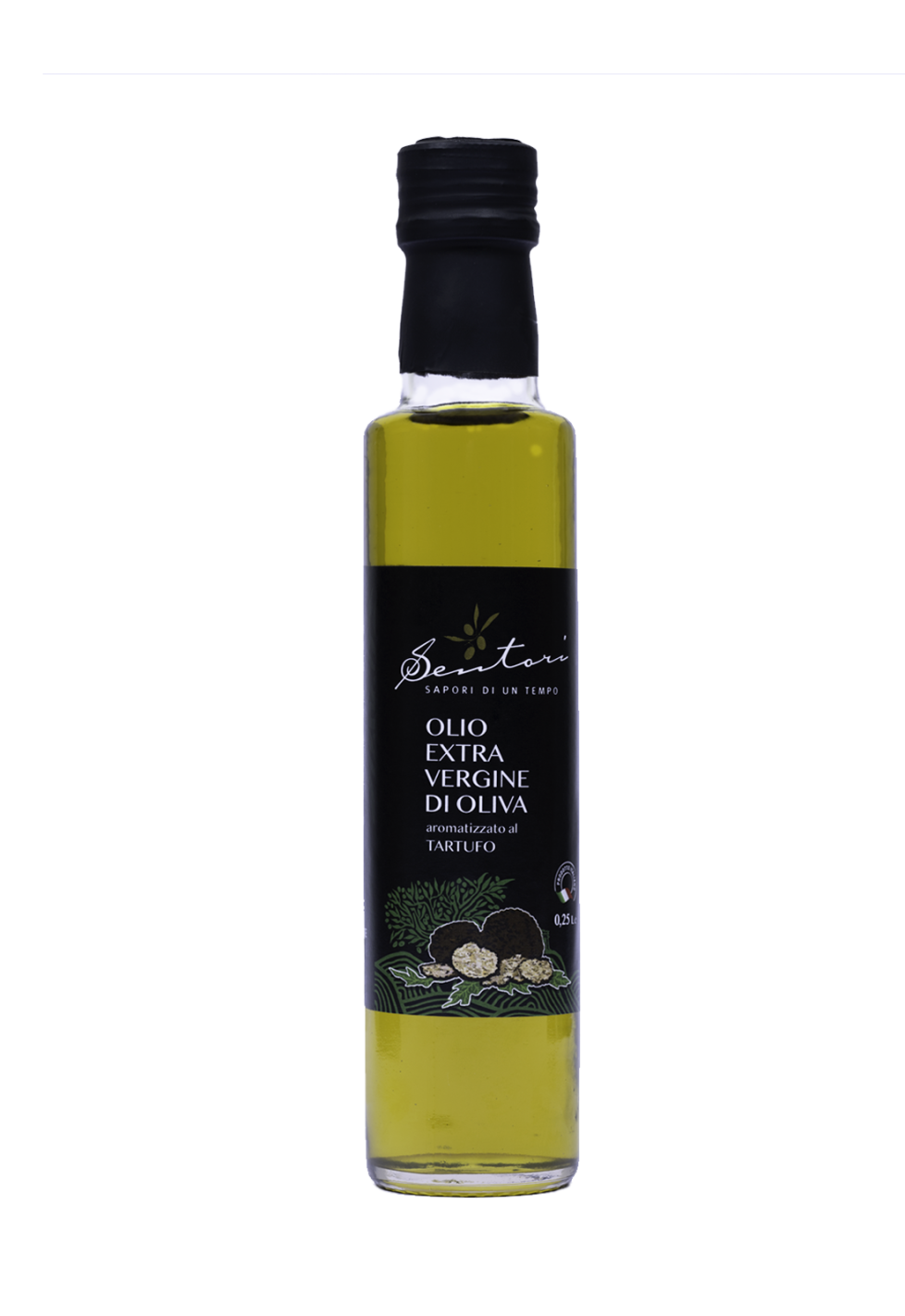 E' il condimento ideale per dar vita a ricette sfiziose e creative. Ottimo per accompagnare uova, carni rosse e formaggi. L'Olio Extra Vergine di Oliva aromatizzato al tartufo Sentori, nasce per rispondere alle richieste dei palati più raffinati. Un prodotto che ritorna in molte ricette della cucina italiana, questo tubero dal gusto unico lascia nella bocca dei più golosi sapori inimitabili.