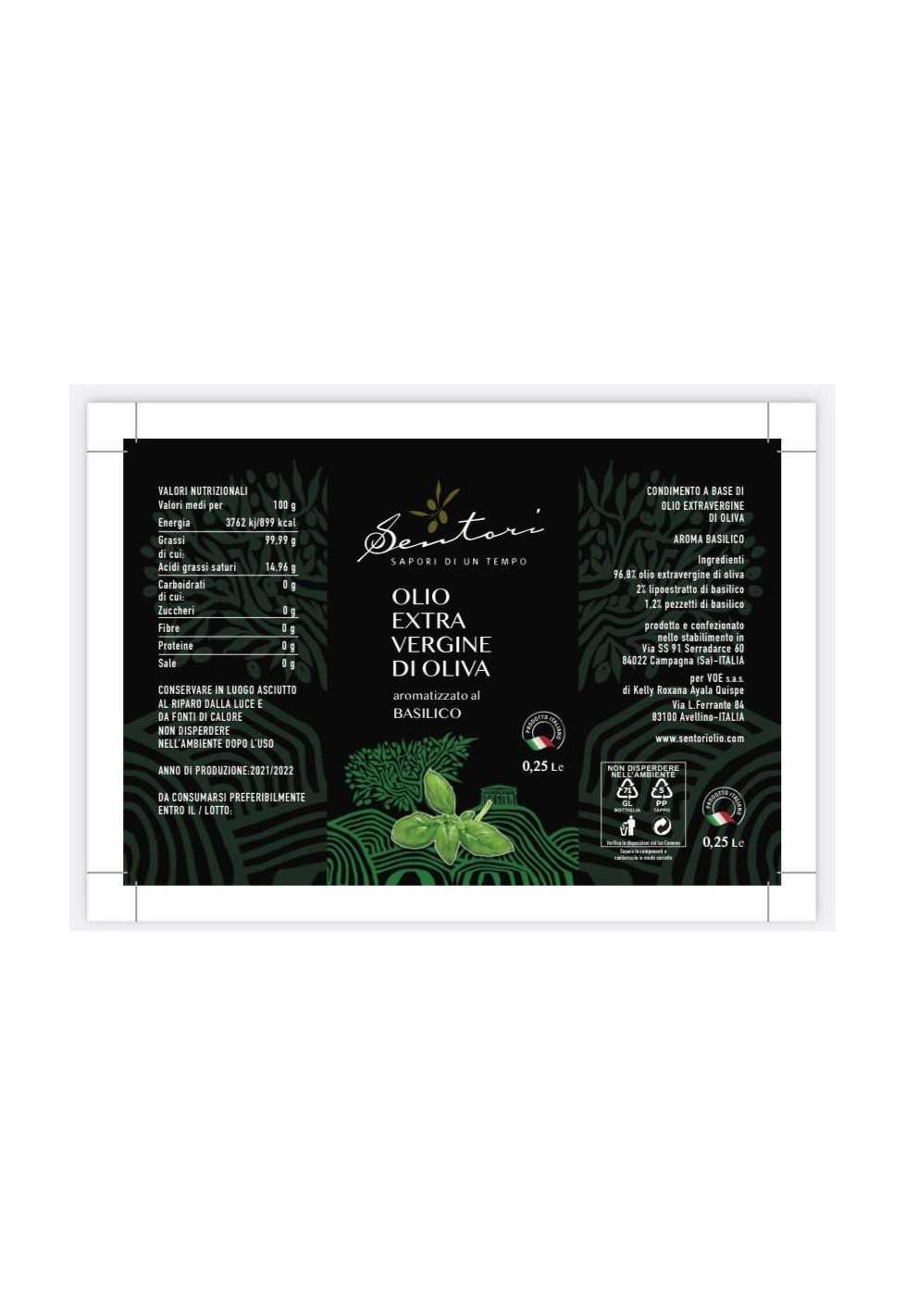 Olio extra vergine aromatizzato al basilico 100% italiano.