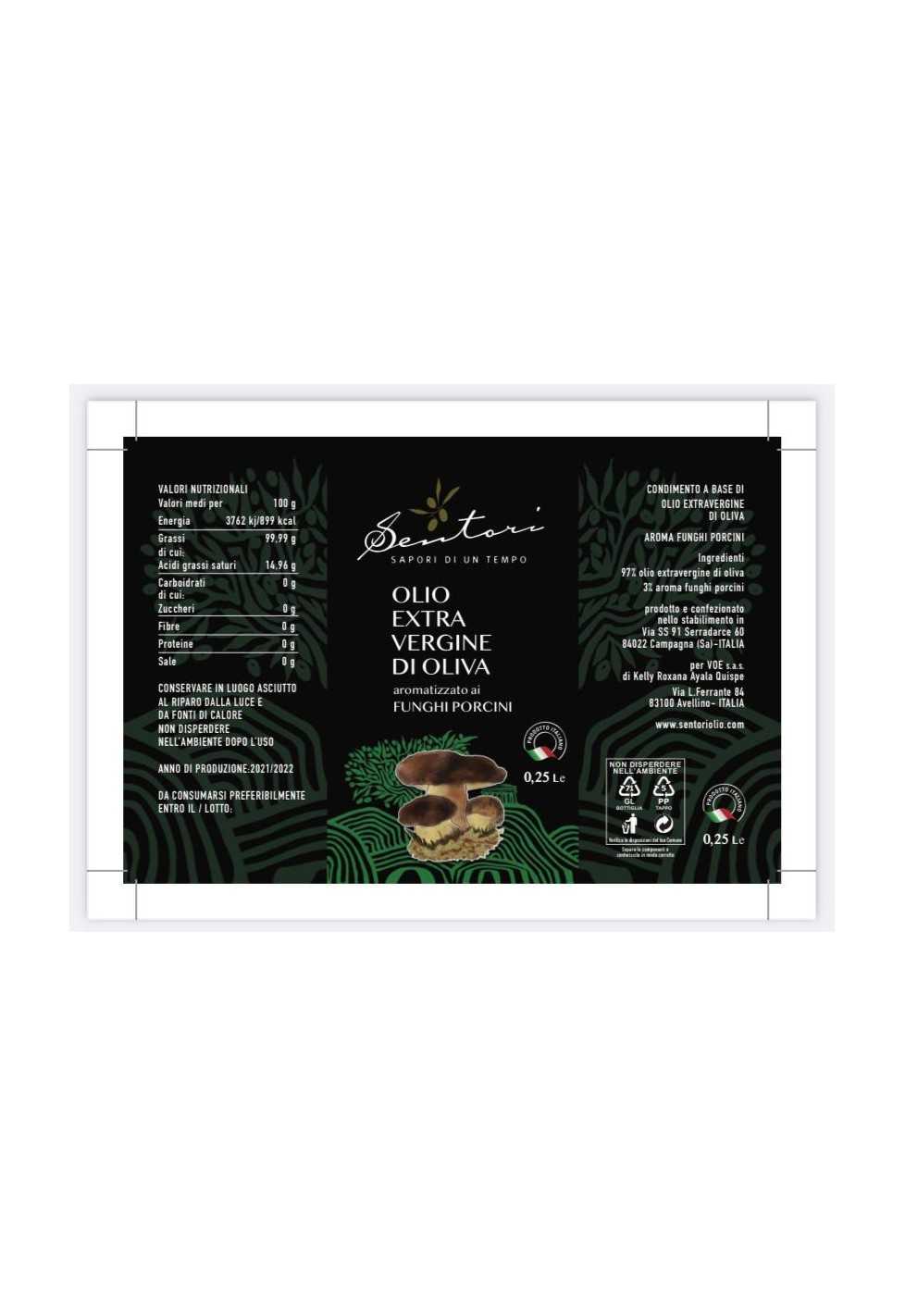 Olio extra vergine aromatizzato ai porcini 100% italiano.