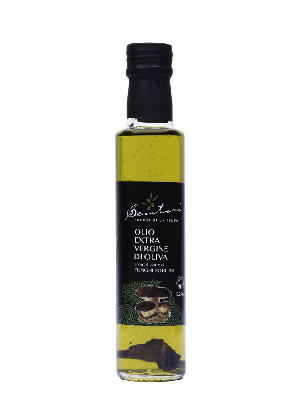 L'olio ai porcini di casa Sentori è un condimento originale e ottenuto grazie alla ricerca e alla massima cura per le materie con le quali viene prodotto. I funghi porcini vengono scelti e selezionati accuratamente e subito dopo la raccolta vengono infusi nell'olio EVO. Grazie a questo processo manterranno intatti gusto e profumo. Il risultato sarà un prodotto che regalerà al vostro palato e al vostro olfatto odori di boschi, terra e montagne.